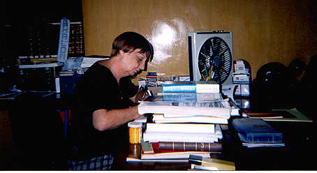 Adela Dworin at her desk in the Patronato