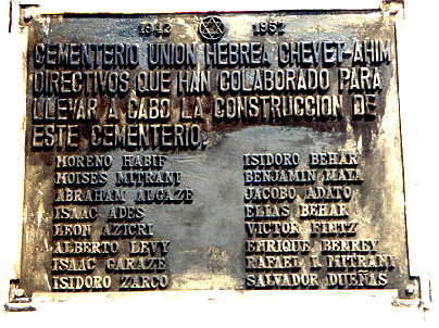 Jewish Community Chevet Ahim Sephardic Cemetery Commemorative plaque of cemetery builders