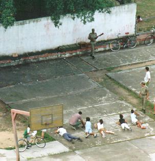 Children practicing shooting on Armed Forces Day